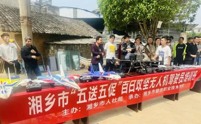 拓展就业新领域随着科技的不断进步和发展,无人机已经成为了越来越多行业的必备工具。为贴合时代发展的需要,加快现代科学技术赋能广大劳动者职业技术水平,进一步提升重点人群就业创业水平,3月底至4月中旬,由湘乡市人社局主办,励志职业技术学校承办的打好充分就业民生保障仗无人机驾驶员培训班顺利举行。